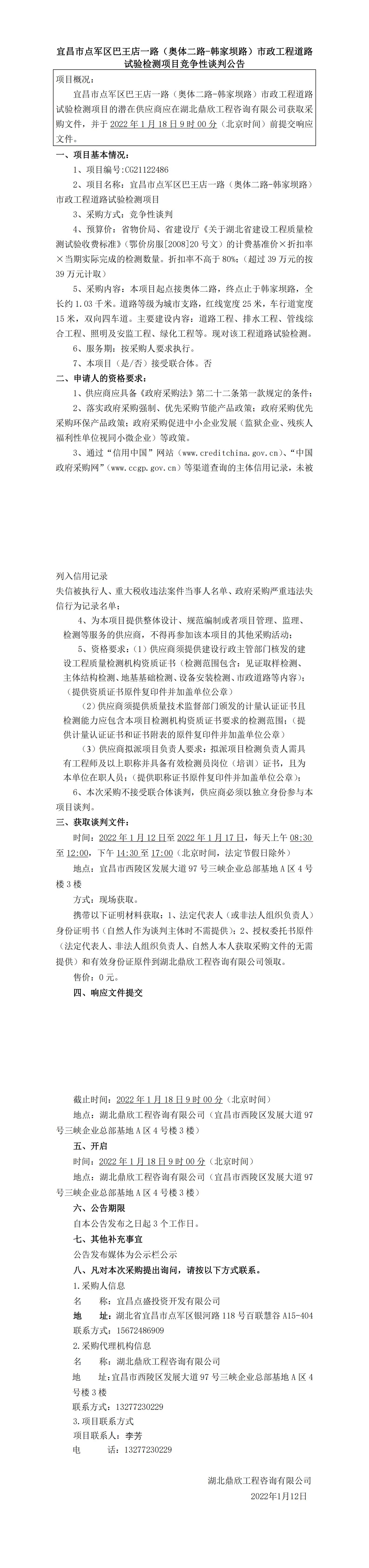 宜昌市點(diǎn)軍區(qū)巴王店一路(奧體二路-韓家壩路)市政工程道路試驗(yàn)檢測(cè)項(xiàng)目競爭性談判公告