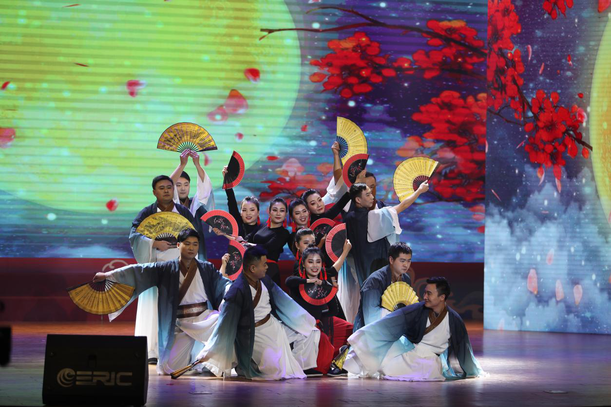 隨著音樂(lè)響起,“楚國(guó)男子”白衣飄飄,手持紙扇,“江南女子”搖曳身姿,執(zhí)扇起舞。公司參加表演的職工在舞臺(tái)上大放異彩,為現(xiàn)場(chǎng)和觀看直播的觀眾奉上一場(chǎng)美輪美奐的文化盛宴,既再現(xiàn)了楚國(guó)藝術(shù)的奇異想象和浪漫色彩,也展現(xiàn)了江南點(diǎn)軍的神秘風(fēng)情和深遠(yuǎn)文化。