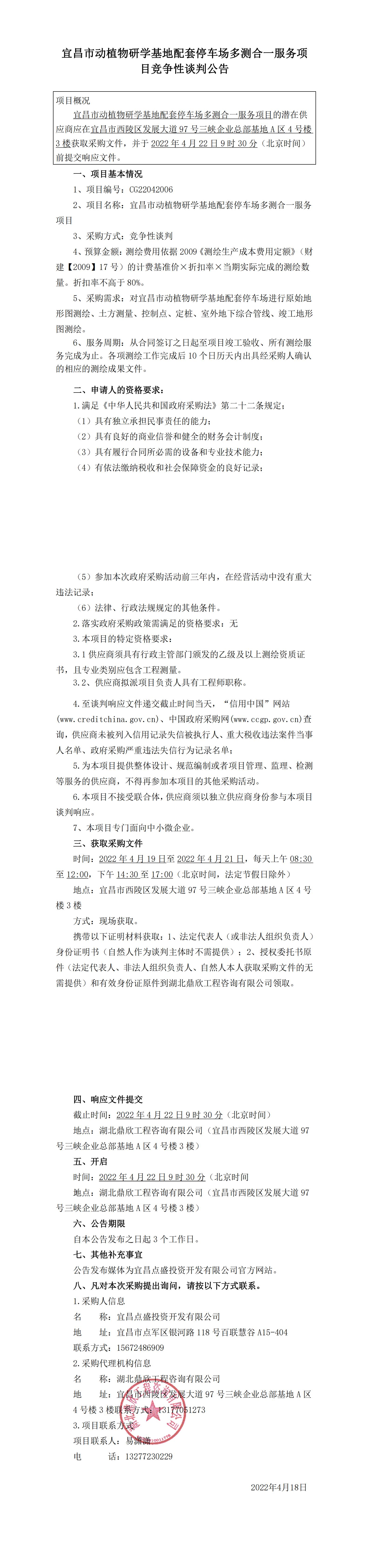 宜昌市動植物研學(xué)基地配套停車場多測合一服務(wù)項目競爭性談判公告