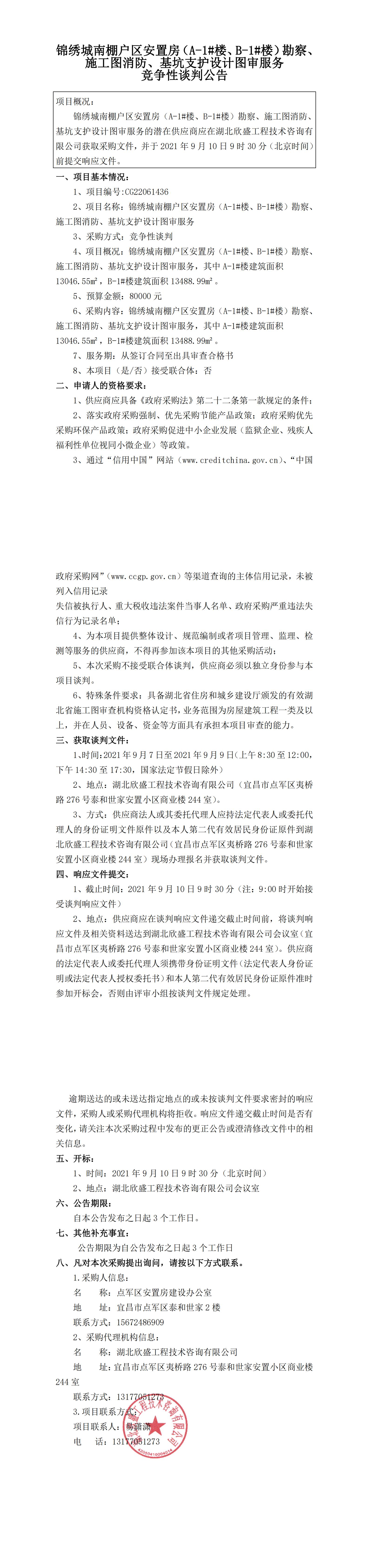 錦繡城南棚戶區(qū)安置房(A-1#樓、B-1#樓)勘察、施工圖消防、基坑支護(hù)設(shè)計圖審服務(wù)競爭性談判公告
