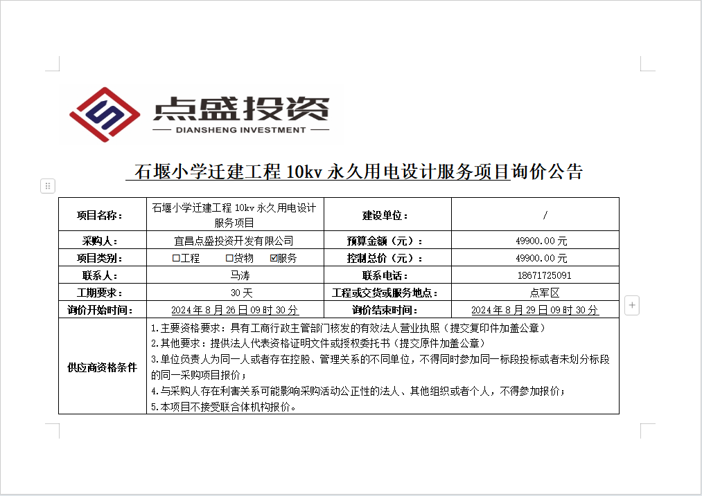 石堰小學(xué)遷建工程10kv永久用電設(shè)計(jì)服務(wù)項(xiàng)目詢價(jià)公告