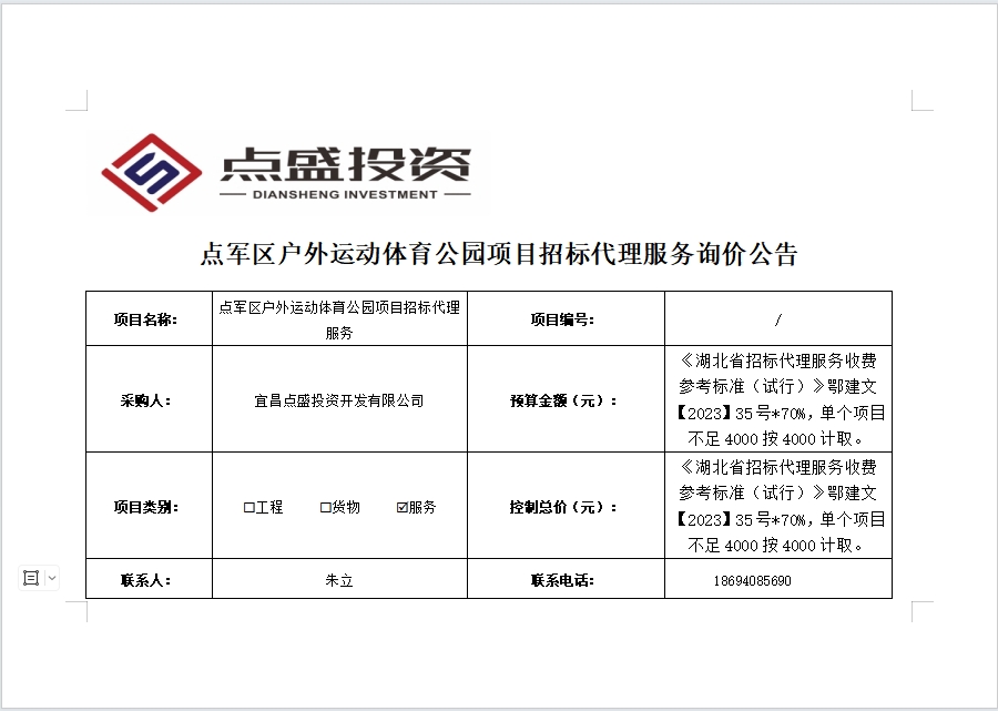 點(diǎn)軍區(qū)戶外運(yùn)動體育公園項(xiàng)目招標(biāo)代理服務(wù)詢價公告
