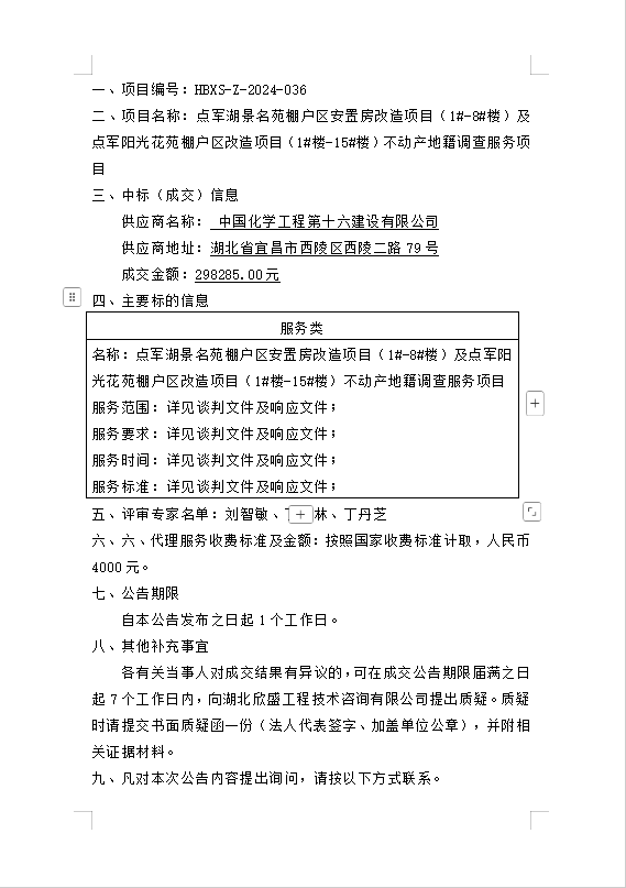 點軍湖景名苑棚戶區(qū)安置房改造項目(1#-8#樓)及點軍陽光花苑棚戶區(qū)改造項目(1#樓-15#樓)不動產地籍調查服務項目成交公告